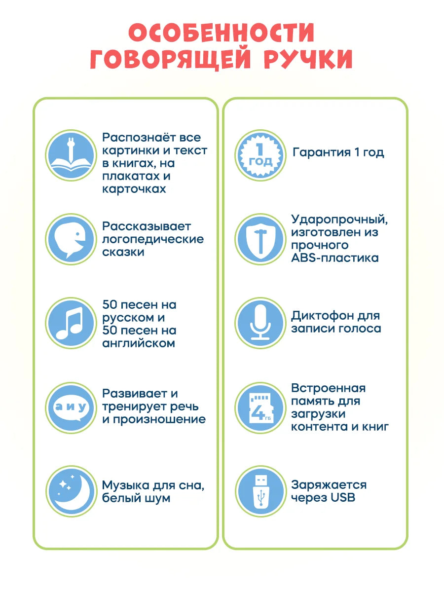 The interactive toy talking pen Q10 is a friend and boyfriend for curious children. The built-in camera will provide sound for all pictures and text in the book: making children familiar with the world around them. 200 pairs of learning cards, 400 Russian words + 400 English words, according to the following categories: Animals; transportation; fruit; vegetable clothing; color; family; occupation; shape/shape; numbers 1 to 10; body parts; Russian alphabet; English alphabet; this will help enrich children's vocabulary. Audio stickers are small stickers used for recording and playing sound. You can burn any information on the stickers: English words and words, instructions, songs. 50 most popular Russian songs, 50 teaching stories, 50 English songs, white noise for fast sleep.